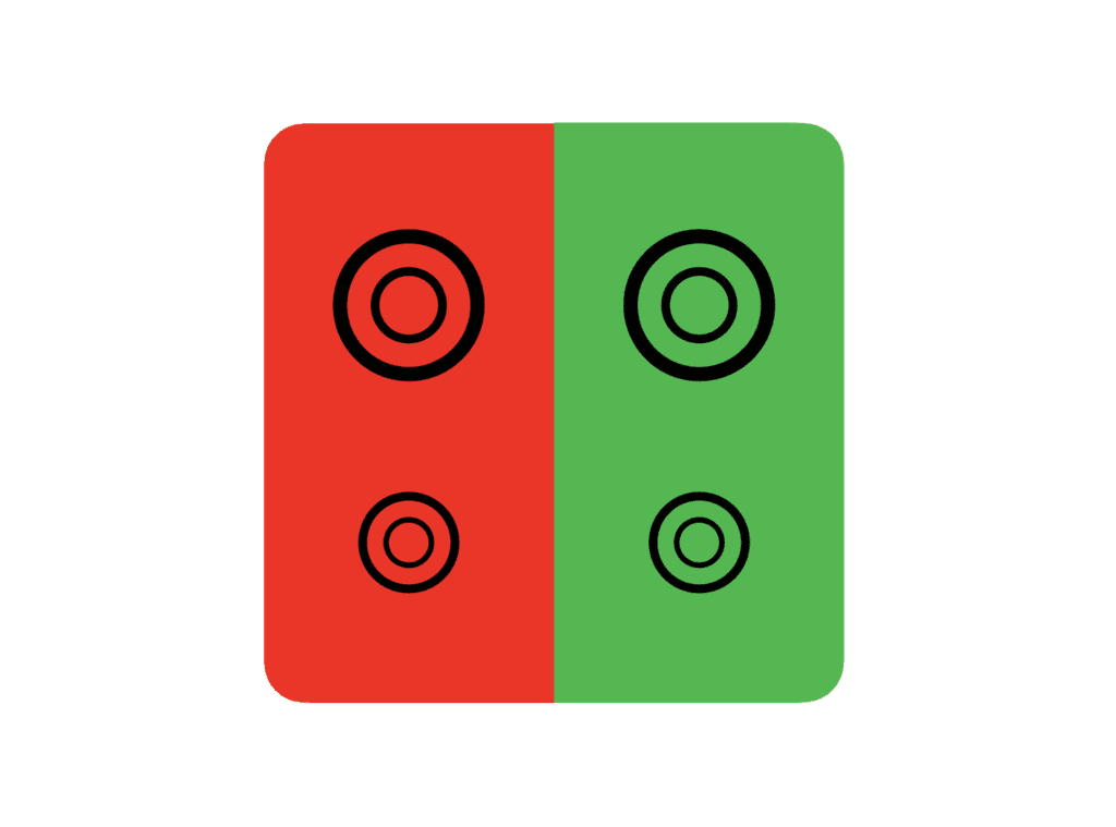 もし、緑の中の黒丸の方が濃く見える様であれば、あなたの肩こりは眼の問題から起きている可能性が高いです。