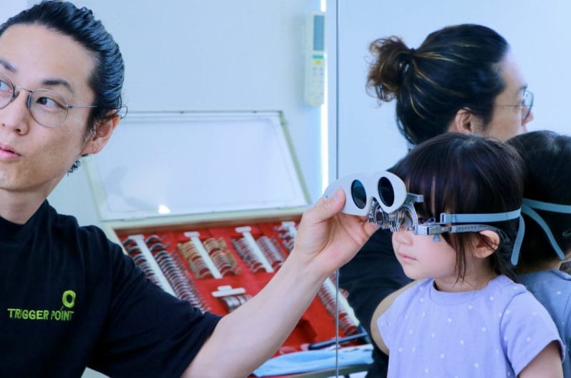 一般的な眼鏡店・眼科では、遠くが1.0見えるようにするのが一般的ですが、トリガーポイントでは楽に見ることができ、両眼のチームワークと身体の連動性が高まることを最優先にします。