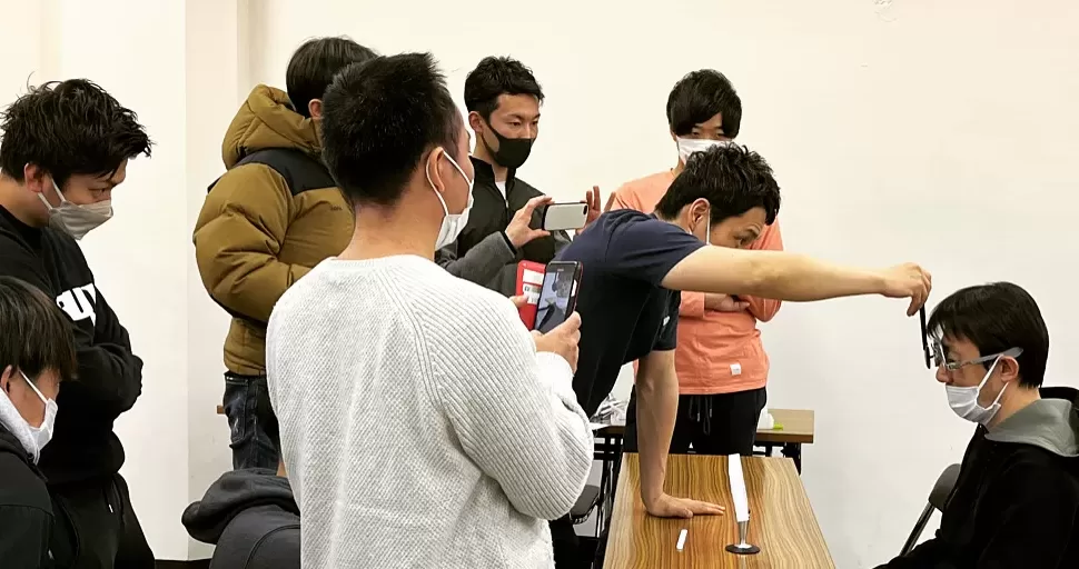 ペアワークを通じ、ツールがない環境でもカバーテストの眼球移動量から「およそ何プリズムのズレか」を目測で推測できるレベルまでスキルを高めます。